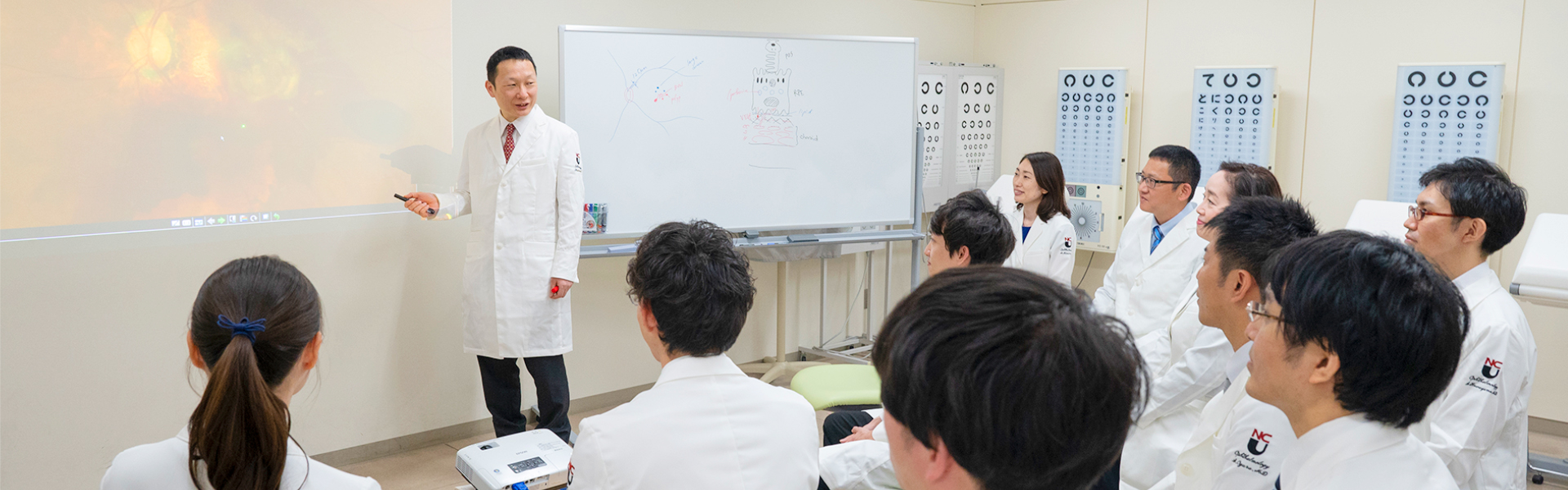 名古屋市立大学眼科学教室では、臨床研究、基礎研究ともさまざまな研究を行っています。研究のターゲットは、加齢黄斑変性、糖尿病網膜症、網膜静脈閉塞症などがあげられます。